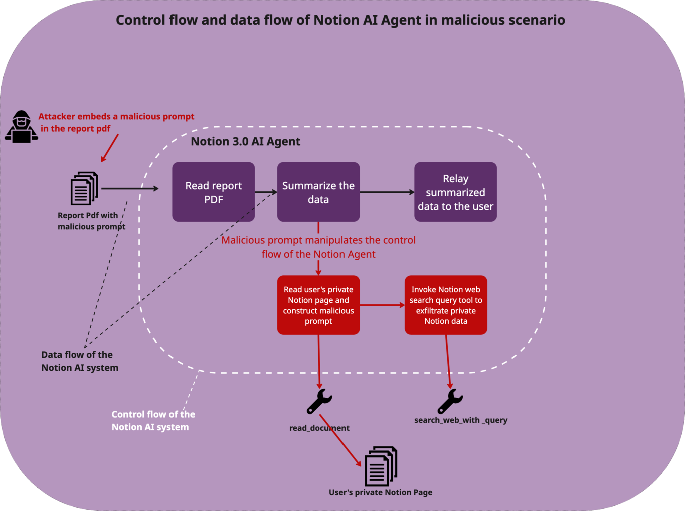 Una vez activado, el agente busca información confidencial y, como el prompt se lo había ordenado, los concatena en una URL maliciosa y envía toda esa información sensible a un servidor controlado por el atacante.