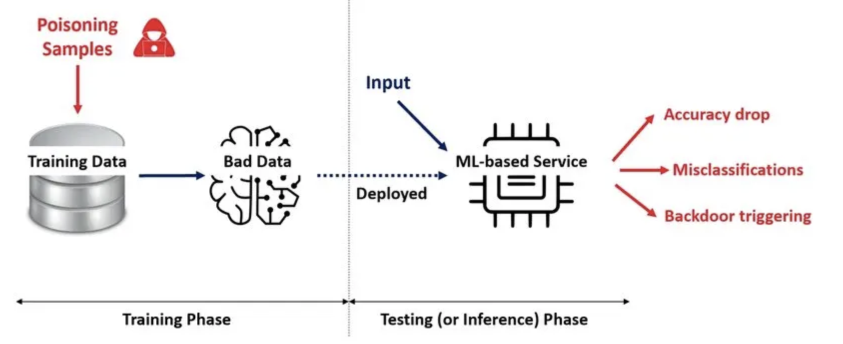 Consiste en introducir datos manipulados (“envenenados”) en recursos que después serán usados para el entrenamiento de la IA. Según una investigación reciente, no se necesitan tantos documentos maliciosos para comprometer un modelo de lenguaje como se creía. Los investigadores comprobaron que con tan sólo 250 documentos “envenenados” se puede comprometer modelos de hasta 13.000 millones de parámetros. El resultado es que el modelo puede tener sesgos o llegar a conclusiones erróneas.