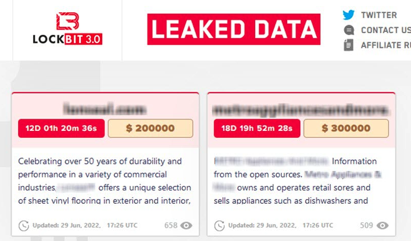 Imagen: Ejemplo de cómo se presenta la urgencia en un leaked data site de LockBit.