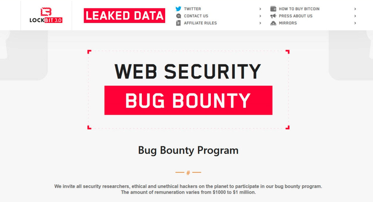 Imagen; Programa de Bug Bounty promovido por LockBit.