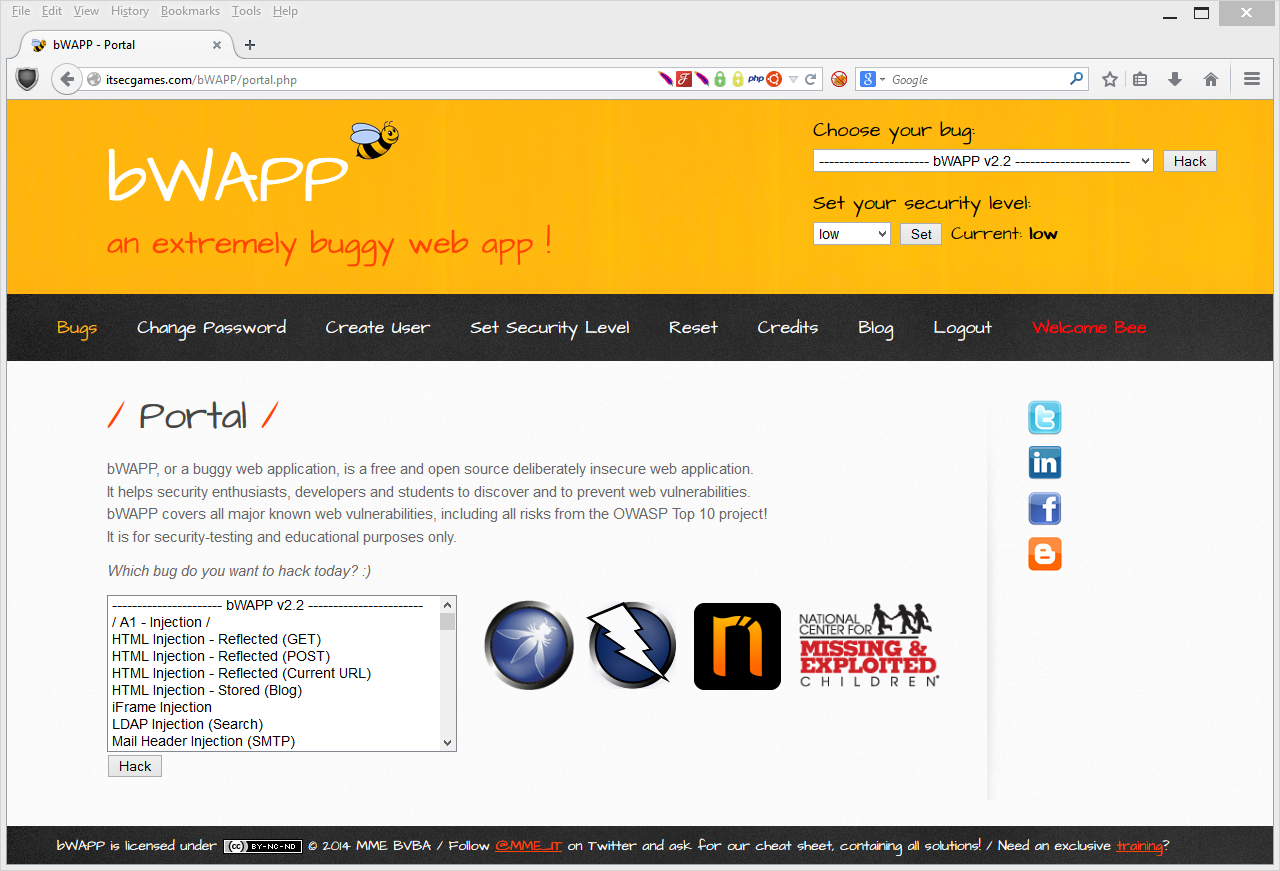 bWAPP es una aplicación vulnerable que incluye más de 100 vulnerabilidades diferentes para practicar.