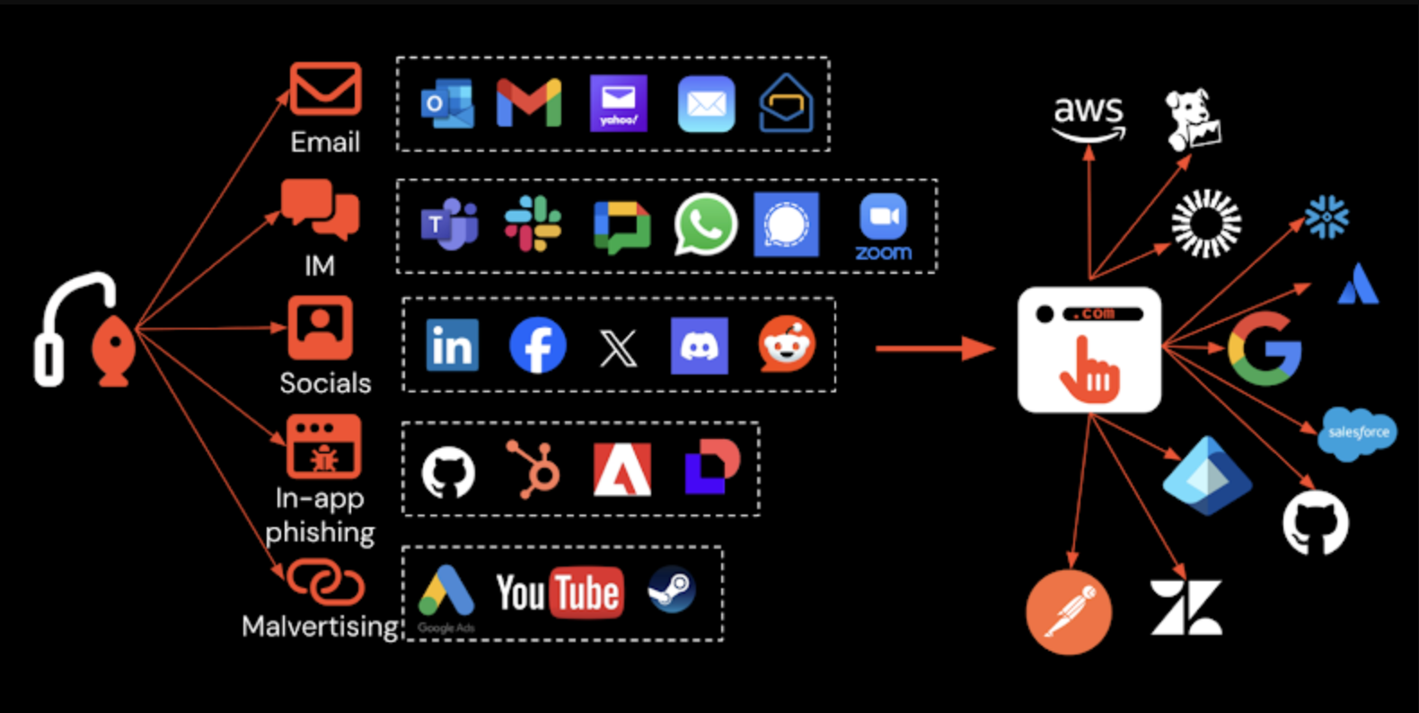 El phishing ahora se realiza a través de múltiples canales, no solo por correo electrónico, y tiene como objetivo una amplia gama de aplicaciones en la nube y SaaS.