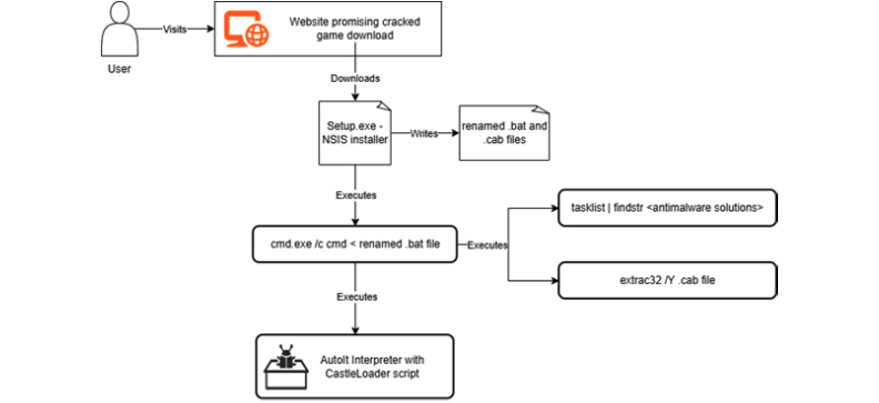 CastleLoader incorpora comprobaciones para determinar la presencia de software de virtualización y programas de seguridad específicos antes de descifrar y ejecutar el malware ladrón en la memoria. Además de ClickFix, los sitios web que anuncian software pirateado y películas pirateadas sirven como cebo para las cadenas de ataque basadas en CastleLoader, engañando a los usuarios para que descarguen instaladores o ejecutables fraudulentos que se hacen pasar por archivos multimedia MP4.